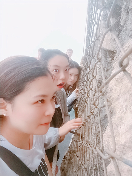 上山,下山,我們用了將近三個小時的時間,累的一個字都說不出來,但是也不能忘記拍照,再累也得微笑面對不是?這才是我們?nèi)速Y中心面對生活的態(tài)度!